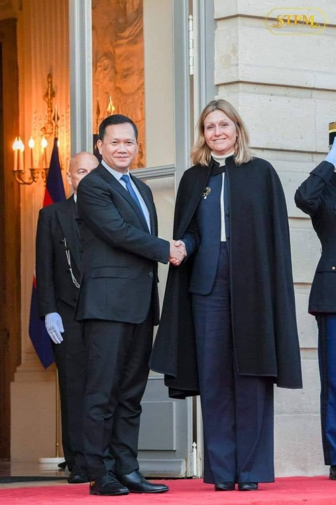 ក្នុងដំណើរទស្សនកិច្ចផ្លូវការនៅប្រទេសបារាំងក្នុងសប្តាហ៍នេះ សម្តេចមហាបវរធិបតី ហ៊ុន ម៉ាណែត នាយករដ្ឋមន្ត្រីនៃព្រះរាជាណាចក្រកម្ពុជាបាននាំកិត្តិយសដ៏ត្រចះត្រចង់និងផលប្រយោជន៍យ៉ាងធំធេងជូនប្រទេសជាតិនិងប្រជាពលរដ្ឋ។ ប្រមុខដឹកនាំរាជរដ្ឋាភិបាលបន្តវេននៃកម្ពុជាត្រូវបានទទួលស្វាគមន៍យ៉ាងកក់ក្តៅលើកម្រាលព្រំក្រហមប្រកបដោយកិត្តិយសពីសំណាក់ប្រធានាធិបតីបារាំង ឯកឧត្តម អេម៉ានុយអែល ម៉ាក្រុង ក៏ដូចប្រធានព្រឹទ្ធសភា ប្រធានរដ្ឋសភា និងនាយករដ្ឋមន្ត្រីបារាំង ក្នុងឋានៈជាភ្ញៀវទស្សនកិច្ចកម្រិតខ្ពស់ដែលទទួលការអញ្ជើញដោយផ្ទាល់ពីឯកឧត្តមប្រធានាធិបតី។