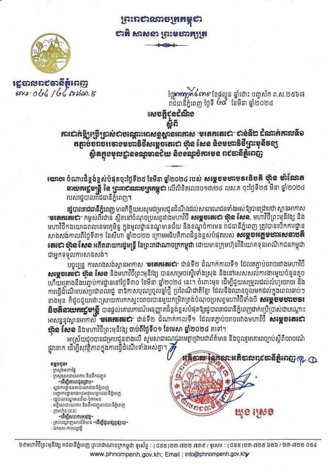 ស្ពានអាកាសមរតកតេជោ គឺជាសមិទ្ធផលហេដ្ឋារចនាសម្ព័ន្ធថ្មីមួយបន្ថែមទៀត ដែលនឹងដាក់ឱ្យប្រើប្រាស់ជាបណ្តោះអាសន្ន នាថ្ងៃទី១ មេសា ២០២៤ មុនបុណ្យចូលឆ្នាំថ្មីប្រពៃណីជាតិ