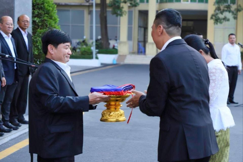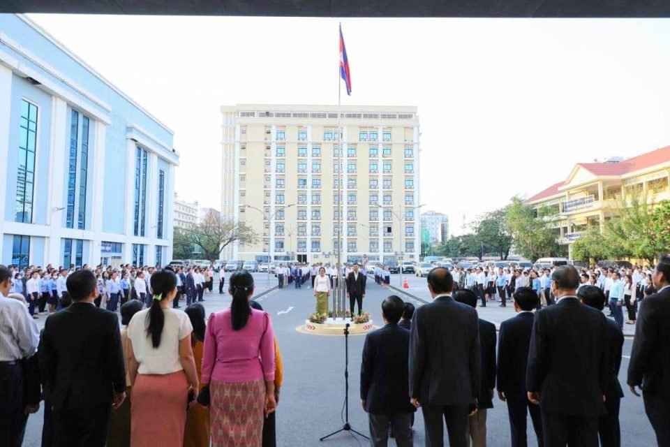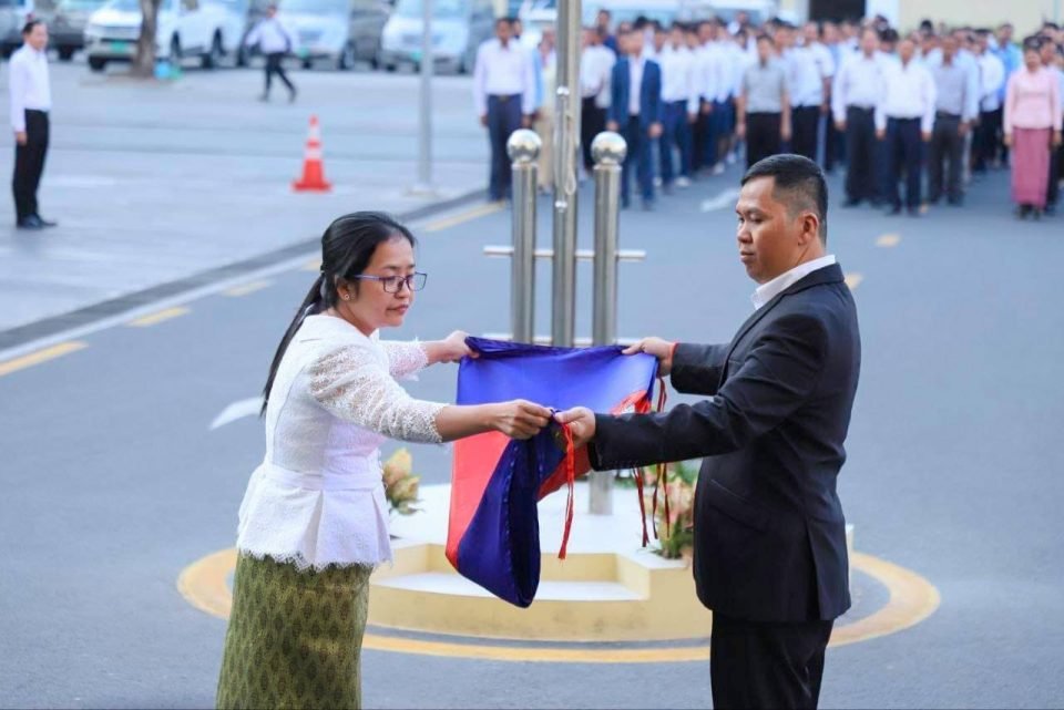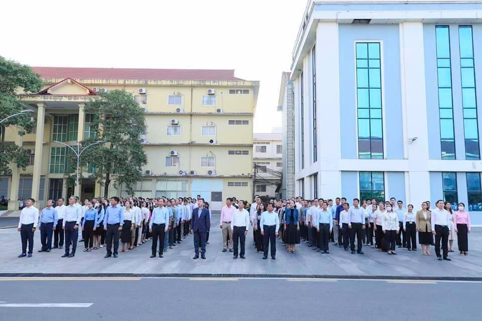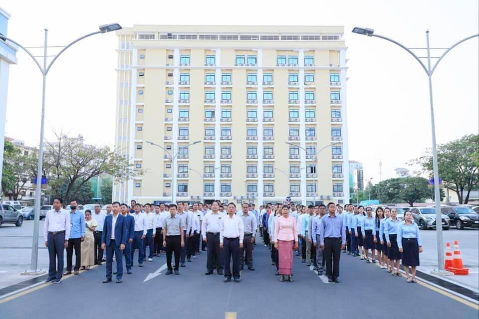 ឯកឧត្តម ហេង សួរ រដ្ឋមន្ត្រីក្រសួងការងារ និងបណ្តុះបណ្តាលវិជ្ជាជីវៈ បានដឹកនាំ មន្ត្រីរាជការនៃក្រសួងការងារ និងបណ្តុះបណ្តាលវិជ្ជាជីវៈ ឲ្យចូលរួមគោរពទង់ជាតិនៃព្រះរាជាណាចក្រកម្ពុជា