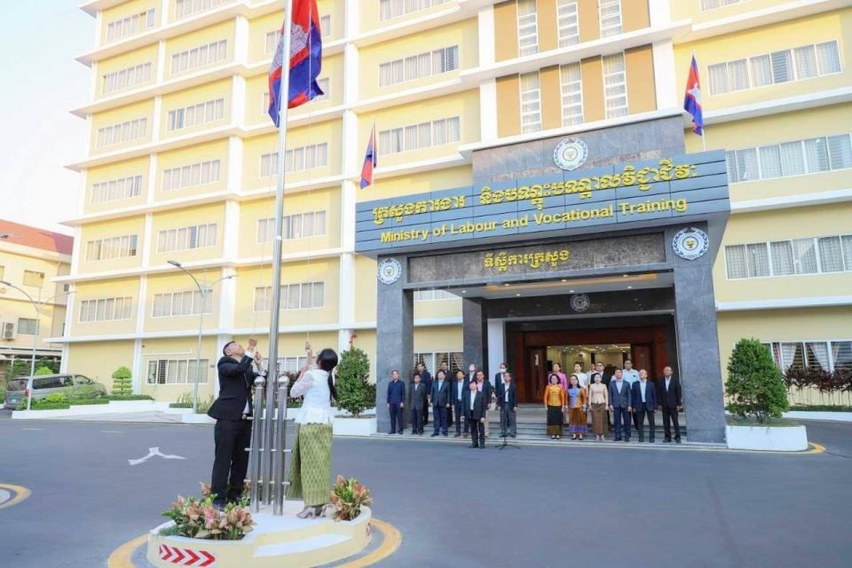 សូមជម្រាបជូនថា ក្រសួងការងារ និងបណ្តុះបណ្តាលវិជ្ជាជីវៈ បានរៀបចំកម្មវិធីគោរពទង់ជាតិមានចំនួនពីរដងក្នុងមួយសប្តាហ៍ ដែលត្រូវធ្វើឡើងជារៀងរាល់ម៉ោង ៧ព្រឹកនៃថ្ងៃចន្ទ និងរៀងរាល់ម៉ោង ៥ល្ងាចនៃថ្ងៃសុក្រ។