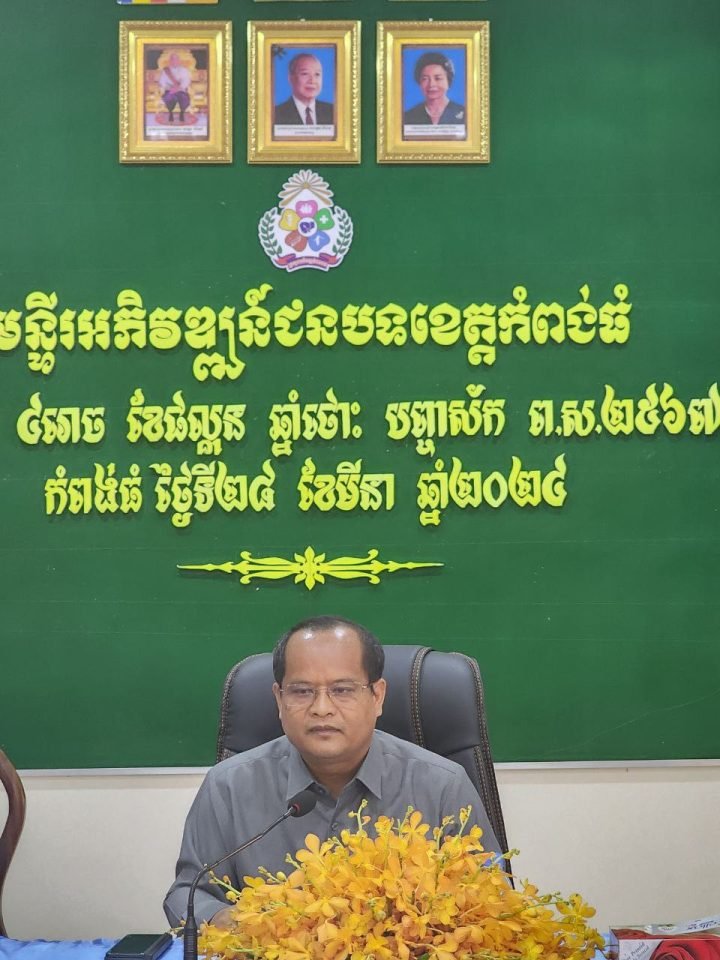ឯកឧត្តម សួន សេរីរដ្ឋា រដ្ឋលេខាធិការ ក្រសួងអភិវឌ្ឍន៍ជនបទ ដឹកនាំការប្រជុំ ដើម្បីពង្រឹកការងារអភិវឌ្ឍន៍ជនជាតិដើមភាគតិច និងគោលការប្រើប្រាស់ថវិការសម្រាប់អភិវឌ្ឍន៍ និងអភិរក្សជនជាតិដើមភាគតិចនៅខេត្តកំពង់ធំ។